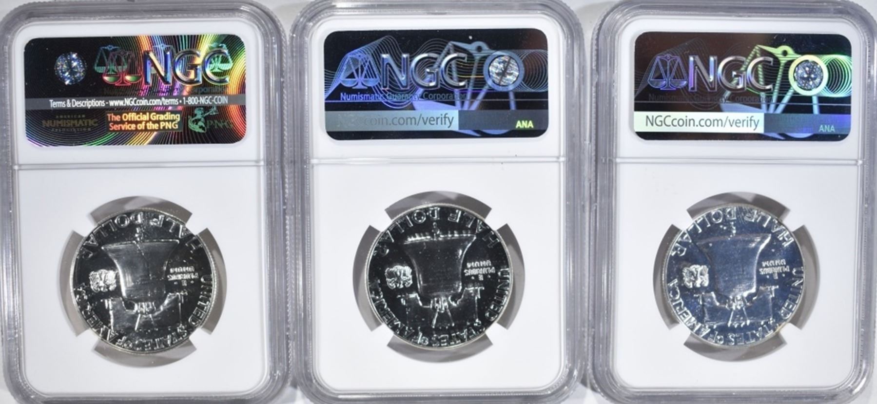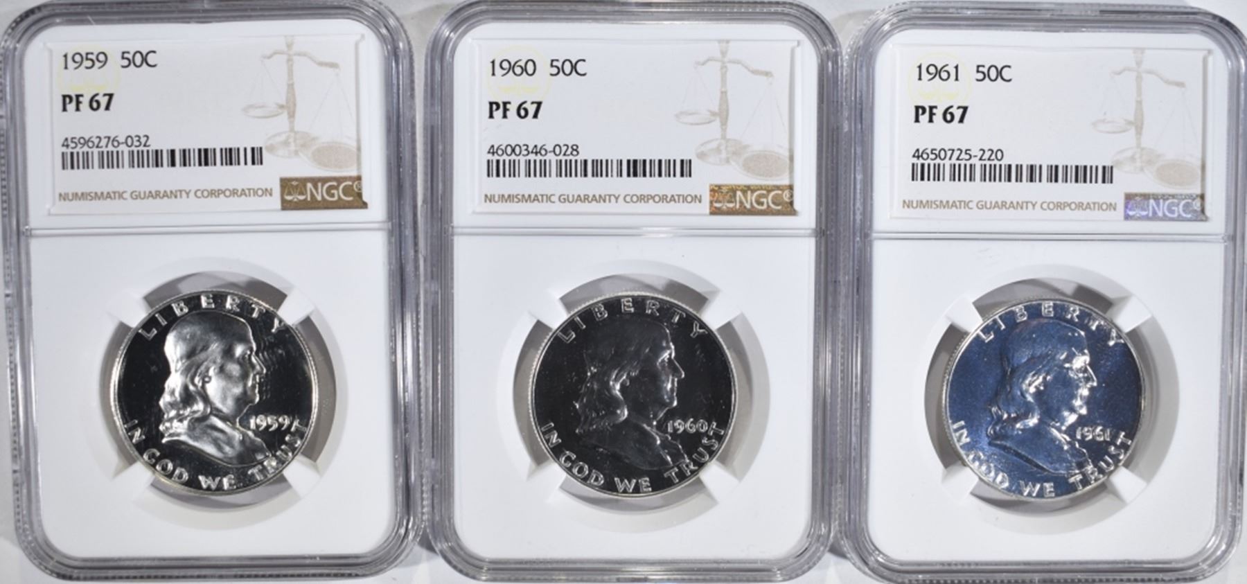 1959, 60 & 61 FRANKLIN HALF DOLLARS, NGC PF-67