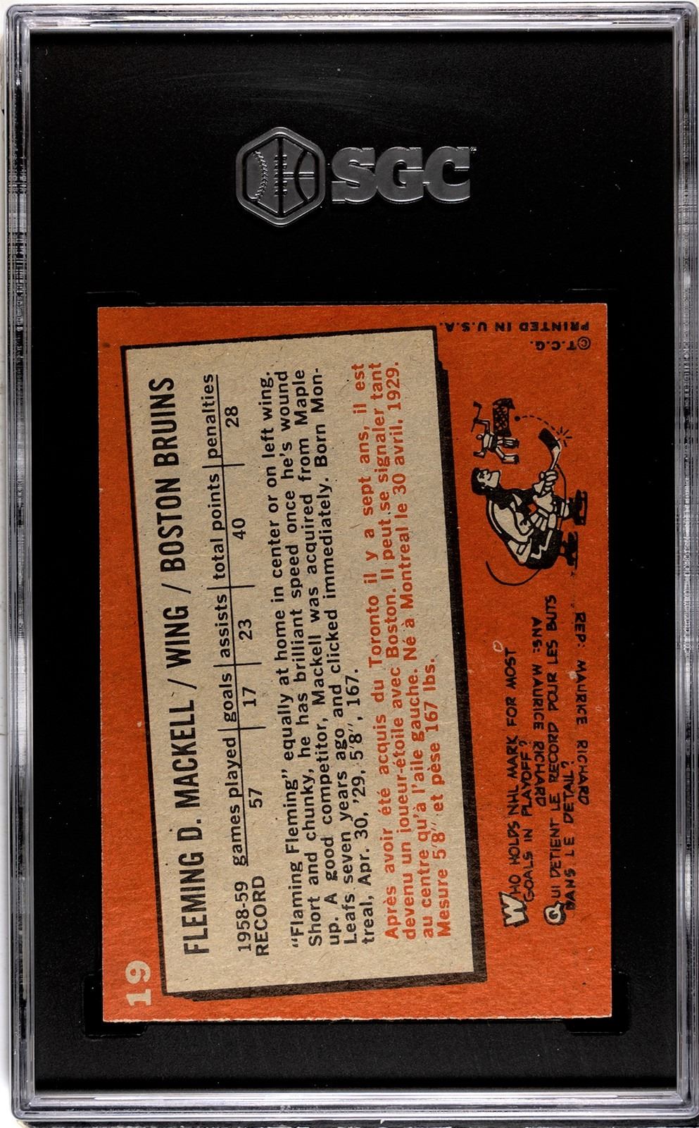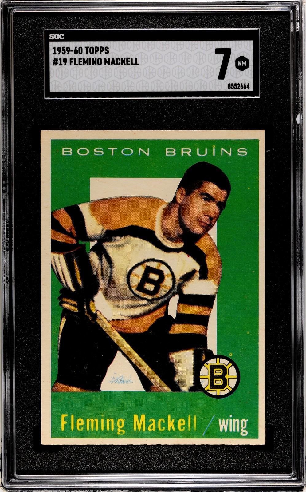 Mackell had a productive career, mainly as a member of the Boston Bruins in the 1950s. He won a pair of Stanley Cups with Toronto before being traded to the Bruins where he would play a prominent role. This one grades a solid looking 7 NM by SGC!