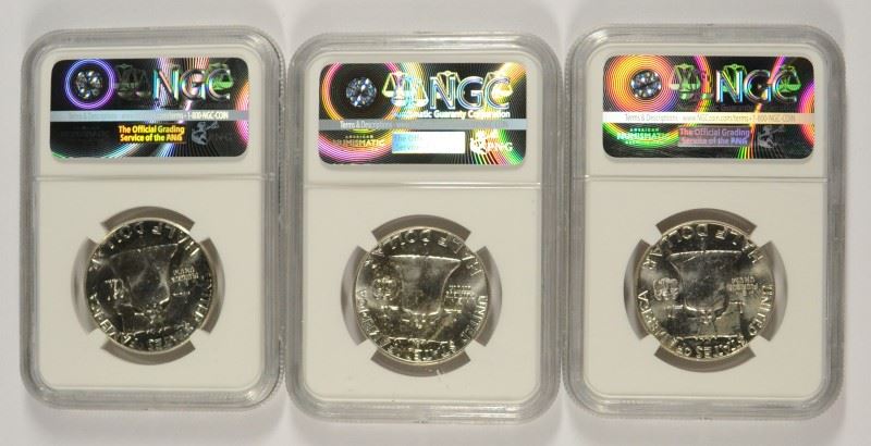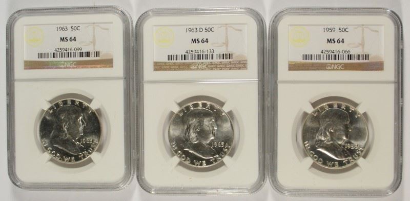 1959, 63 & 63-D FRANKLIN HALF DOLLARS, NGC MS-64