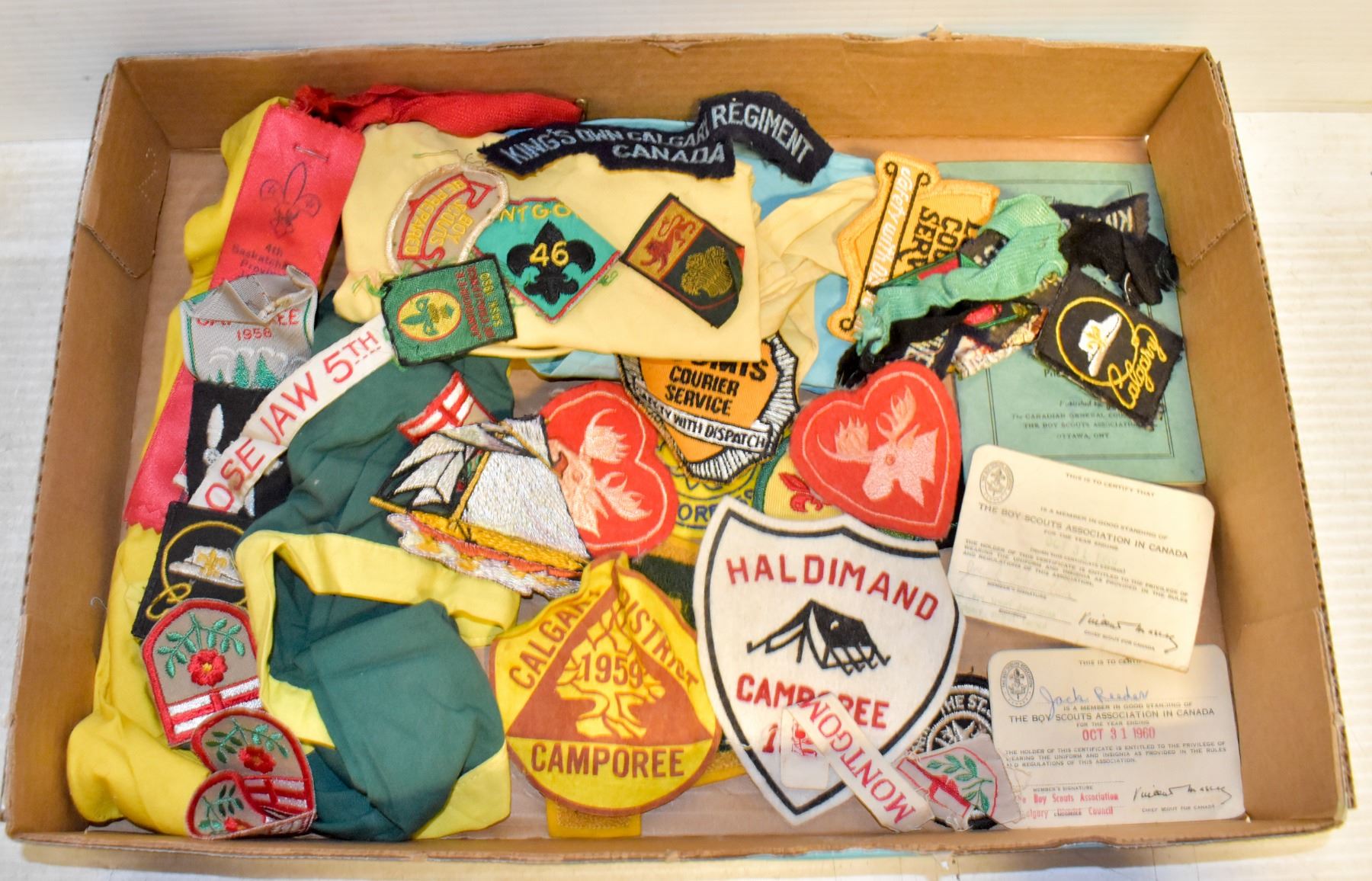 1959 BOY SCOUTS BADGES WITH PAPERS AND SASHES