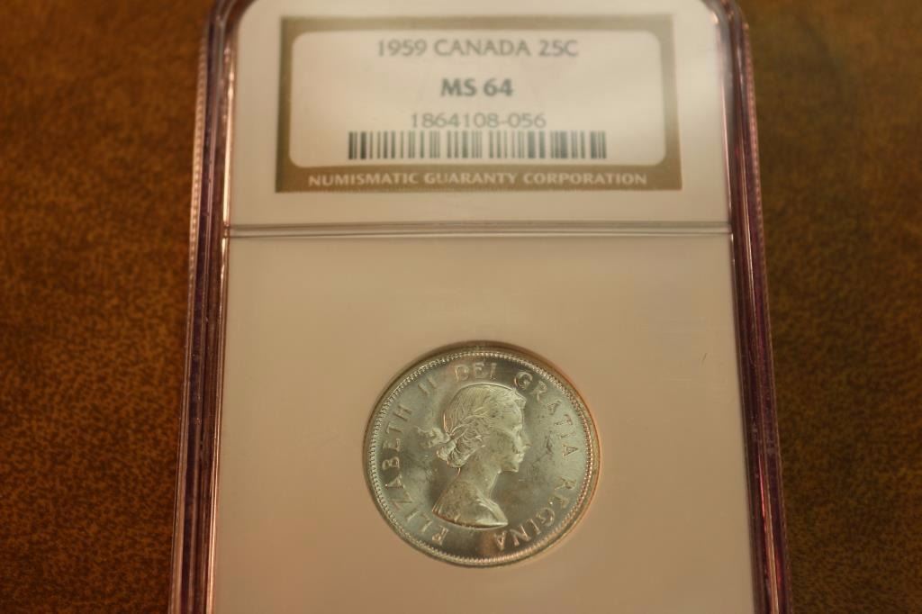 1959 CANADA SILVER 25 CENT NGC MS64
