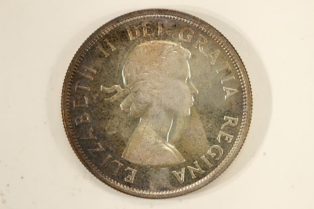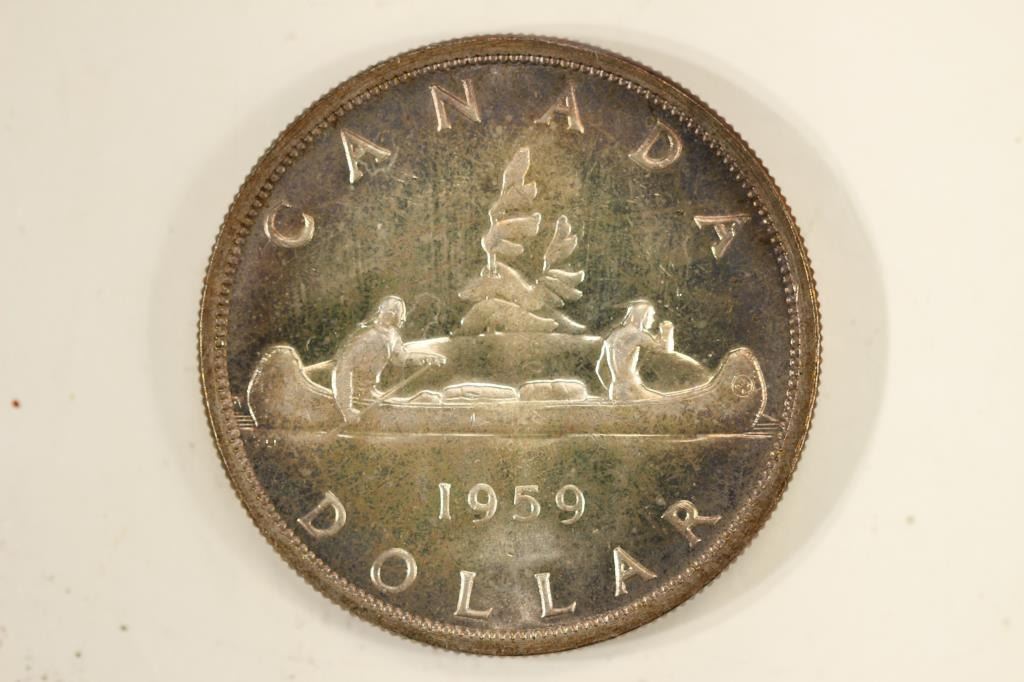 1959 CANADA SILVER DOLLAR TONED BRILLIANT UNC