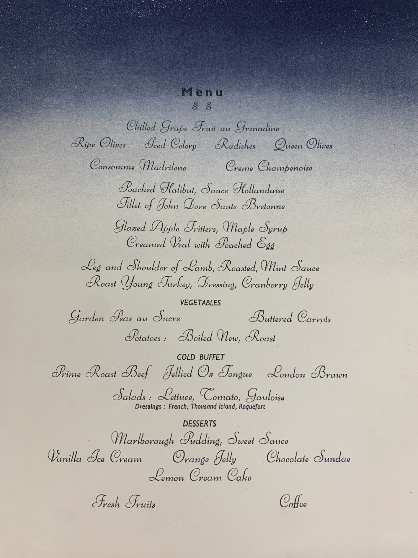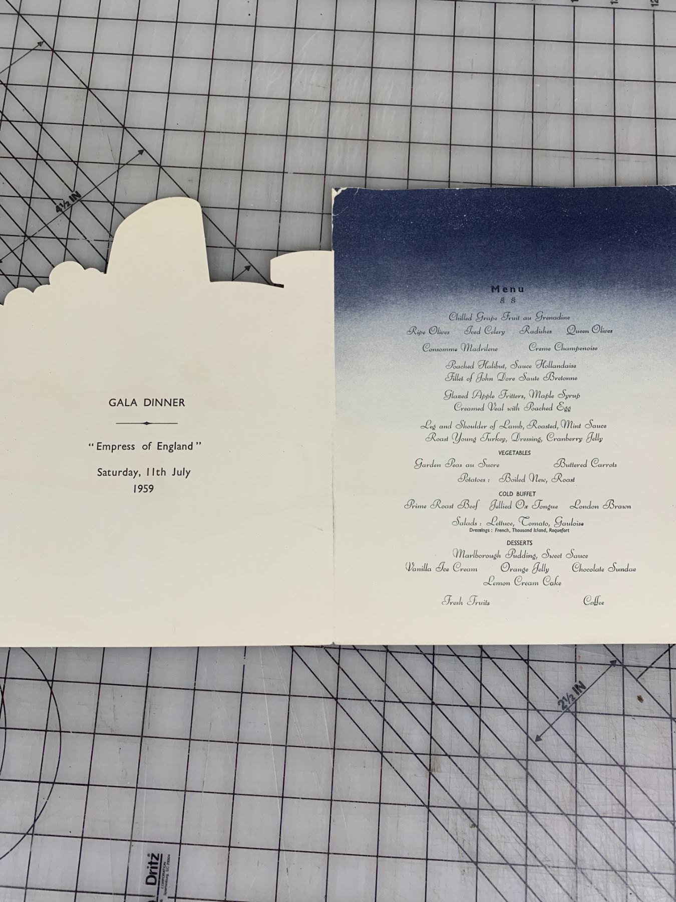 1959 CANADIAN PACIFIC EMPRESS OF ENGLAND GALA MENU