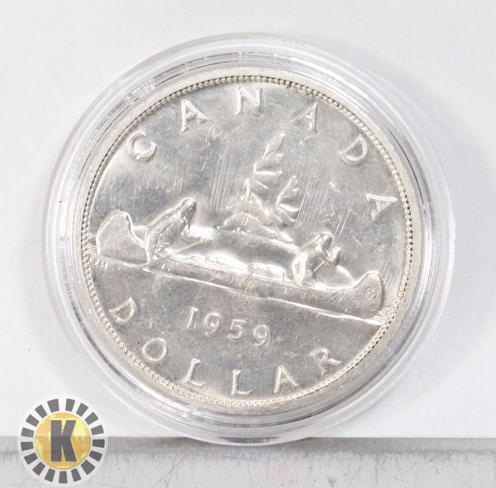 1959 silver dollar 80% silver low mintage 1,448,000***ITEM(S) LOCATED IN LETHBRIDGE ALBERTA