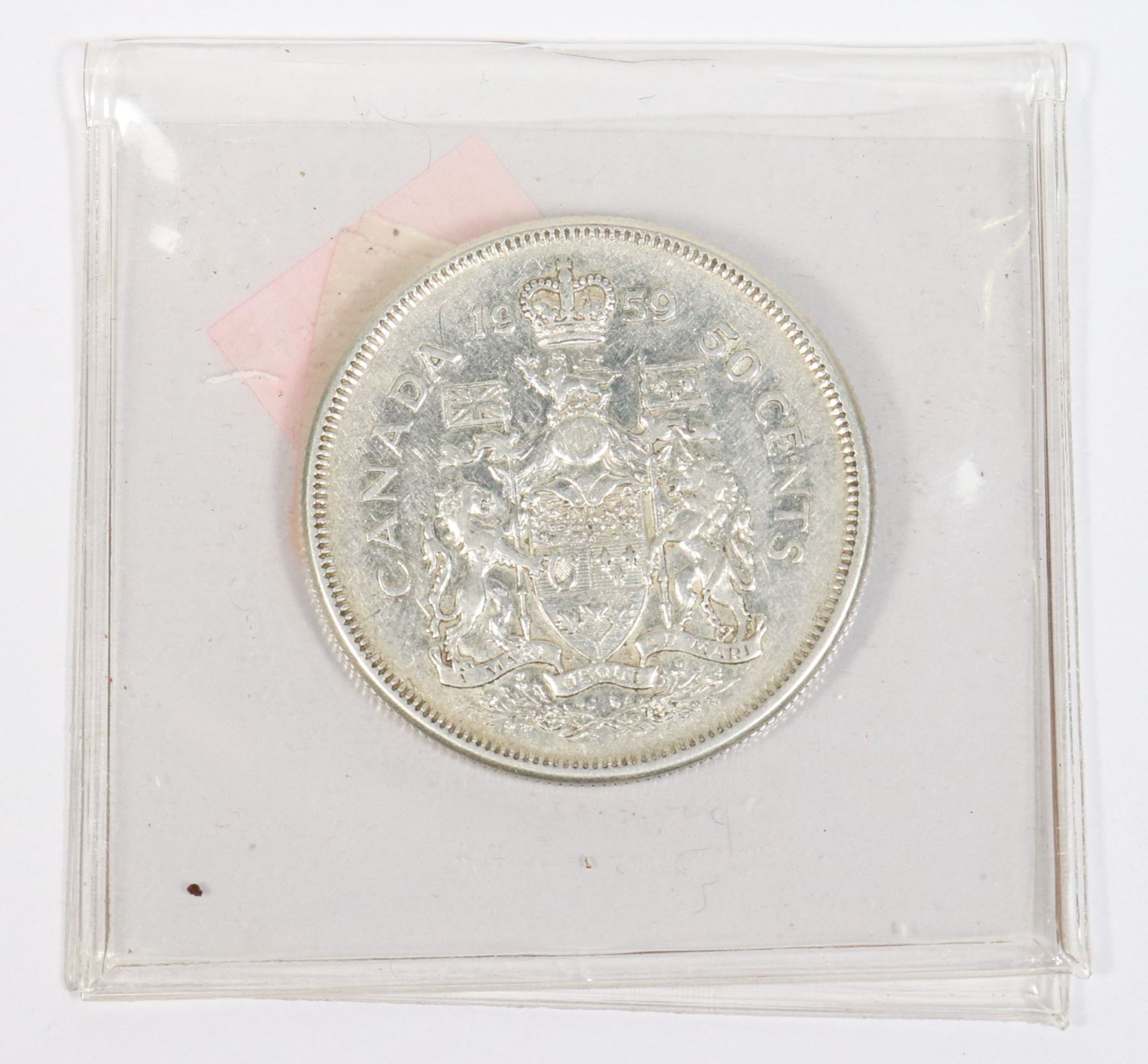 1959 CANADIAN SILVER HALF DOLLAR, 0.3-OZ SILVER
