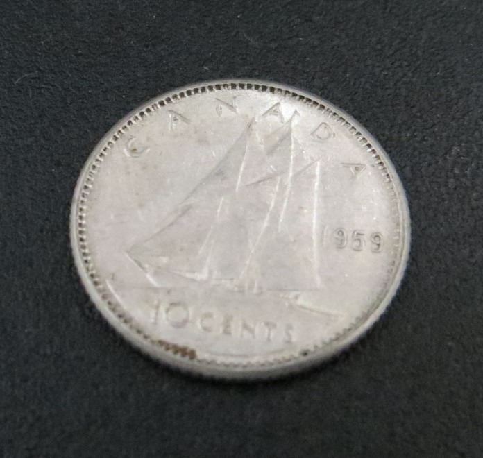 1959 Canadian Silver 10 Cent Coin
