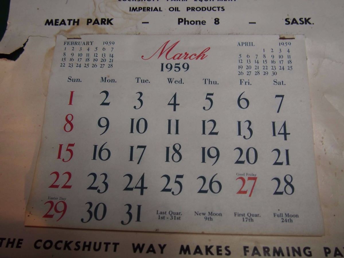 1959 Cockshutt & Imperial Oil Advertising Calendar, Meath Park Sk.