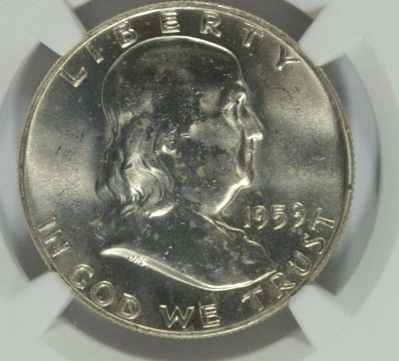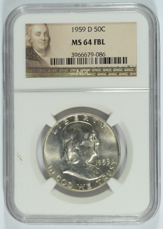 1959-D FRANKLIN HALF DOLLAR, NGC MS-64 FBL