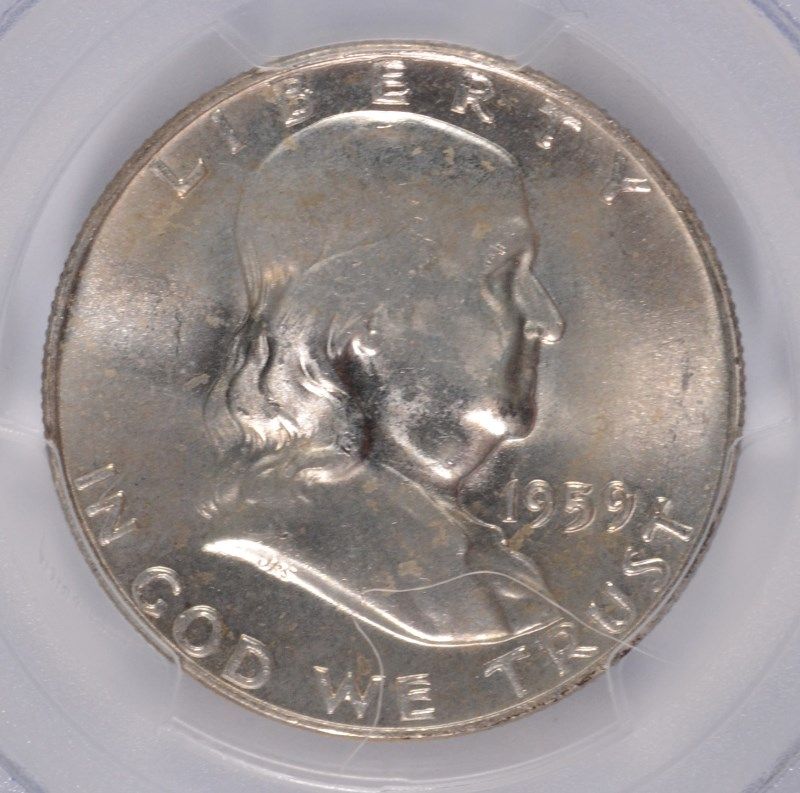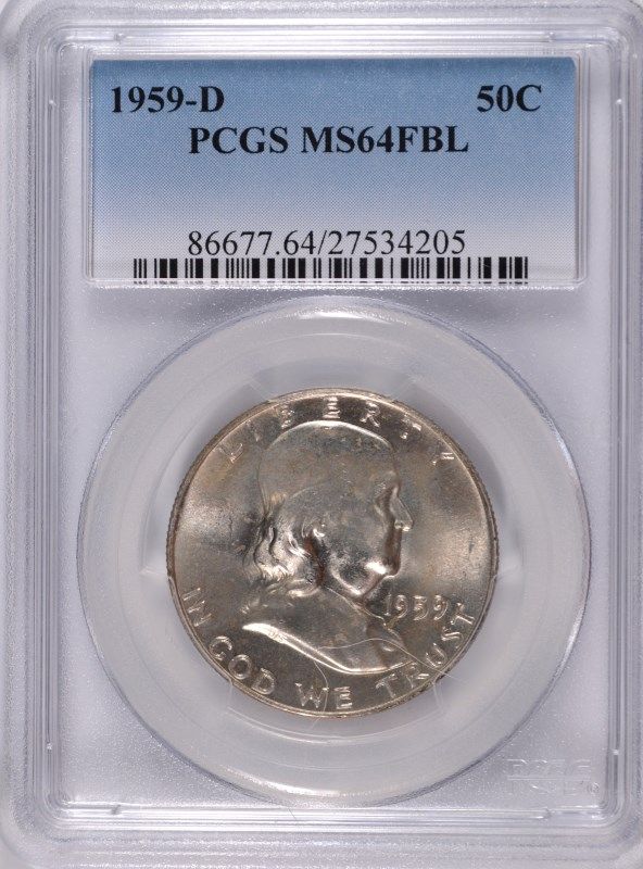 1959-D FRANKLIN HALF DOLLAR, PCGS MS-64 FBL