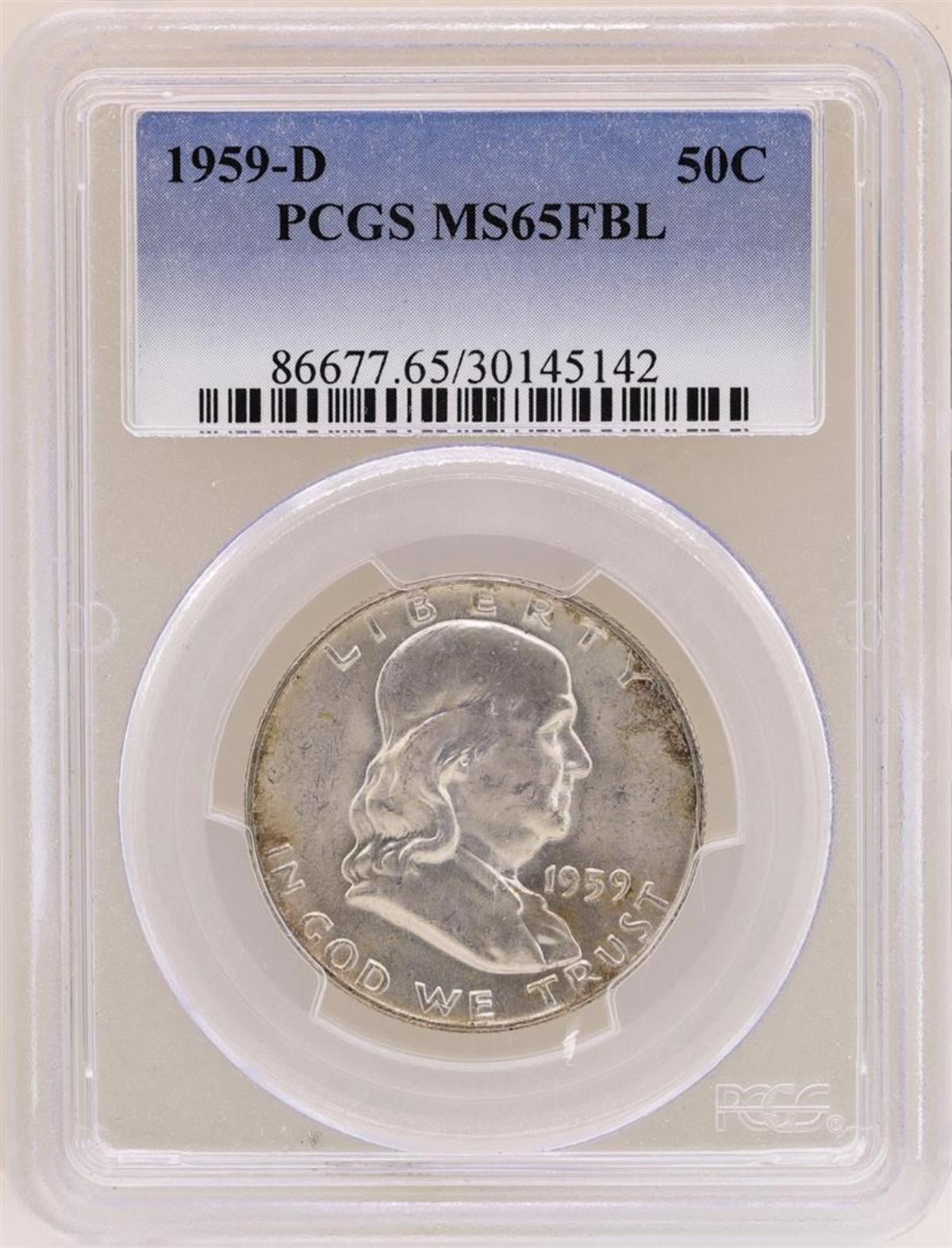One 1959-D Franklin Half Dollar Coin PCGS MS65FBL. PCGS Certified.