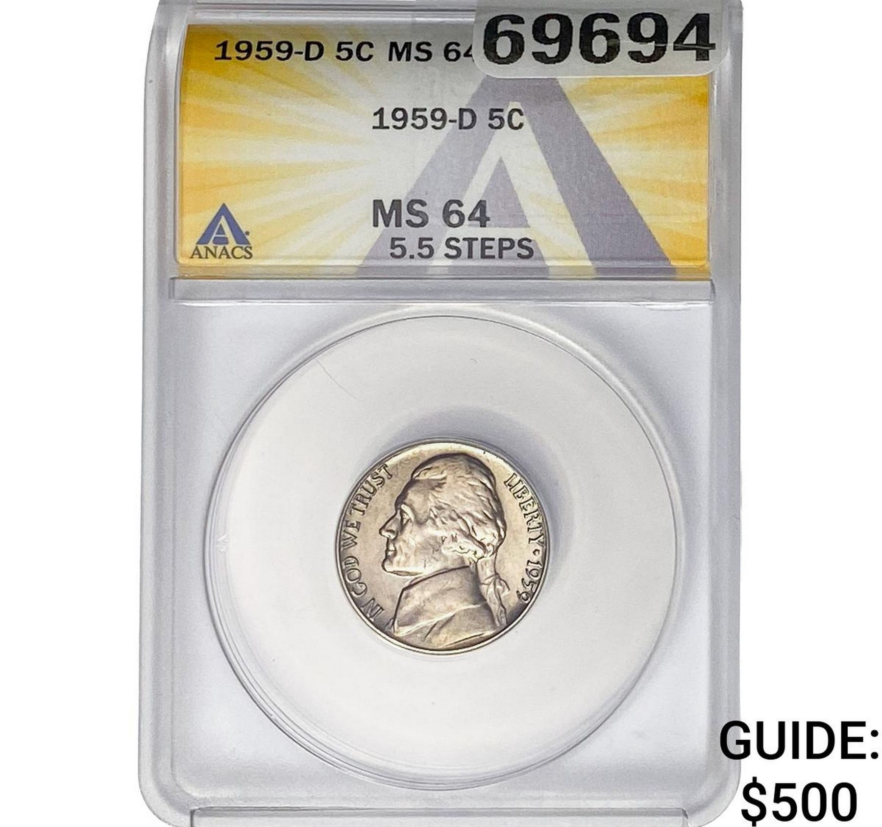 1959-D Jefferson Nickel ANACS MS64 5.5 Steps