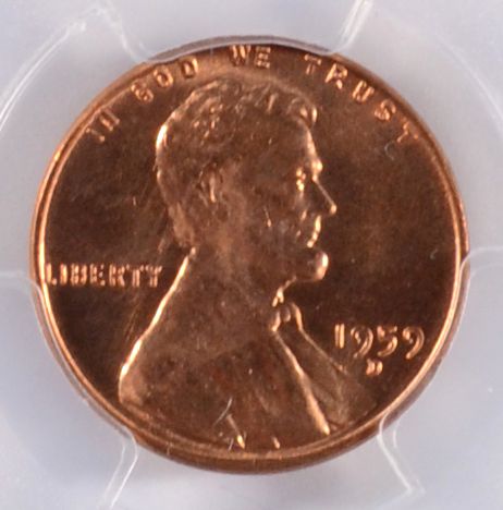 1959-D LINCOLN CENT, PCGS MS-67 RED PRICE GUIDE, $775.00
