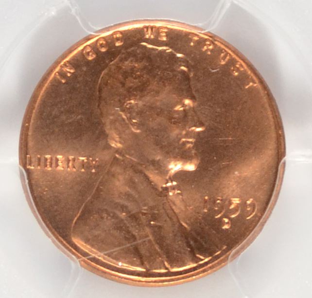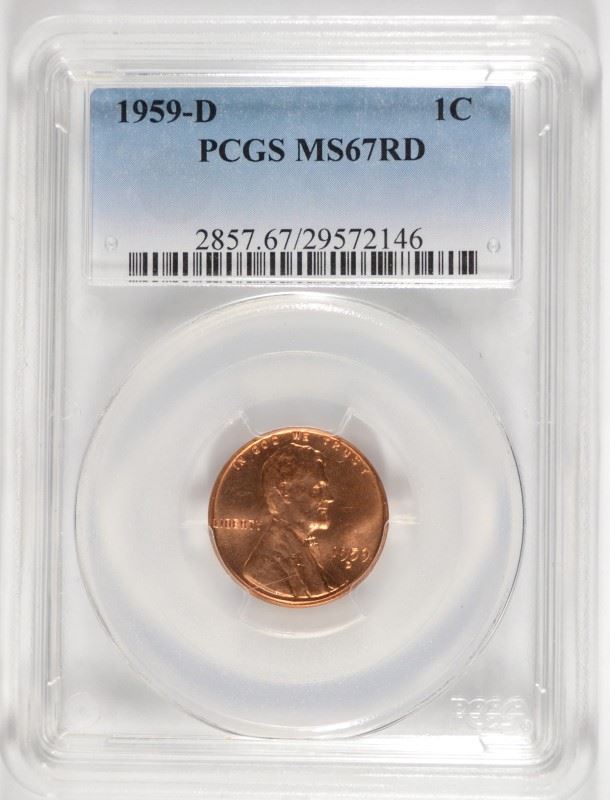1959-D LINCOLN CENT, PCGS MS-67 RED PRICE GUIDE, $775.00