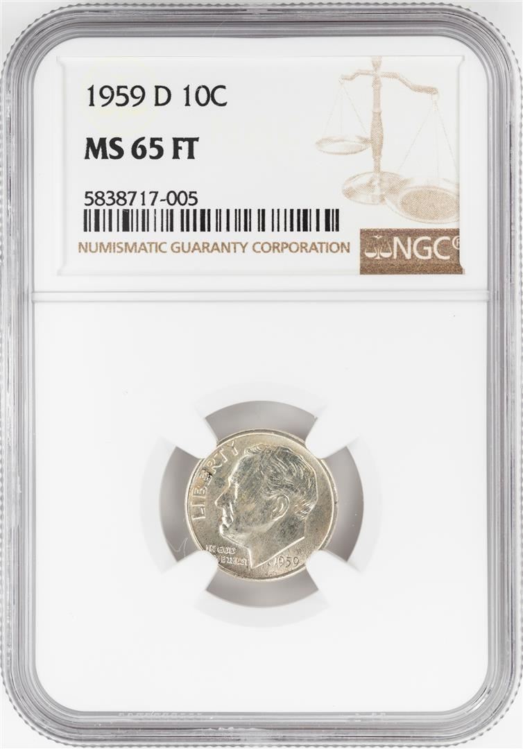 One 1959-D Roosevelt Dime Coin NGC MS65FT. NGC Certified.