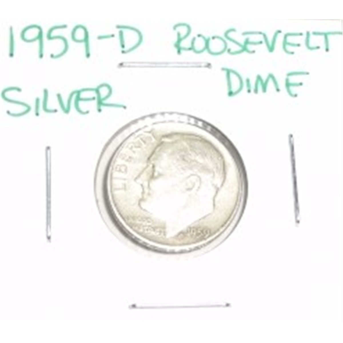 1959-D Roosevelt Silver Dime *PLEASE LOOK AT PICTURE TO DETERMINE GRADE - COIN OUT OF SAFE DEPOSIT BOX & NOT GRADED*!! ***Coin, Currency & All Items Listed in this auction - Grades, Conditions and Values are not Safe Deposit Coins LLC Responsibilty. Grades, Condition and Values are determined by Consigner(s) & Buyers ONLY***