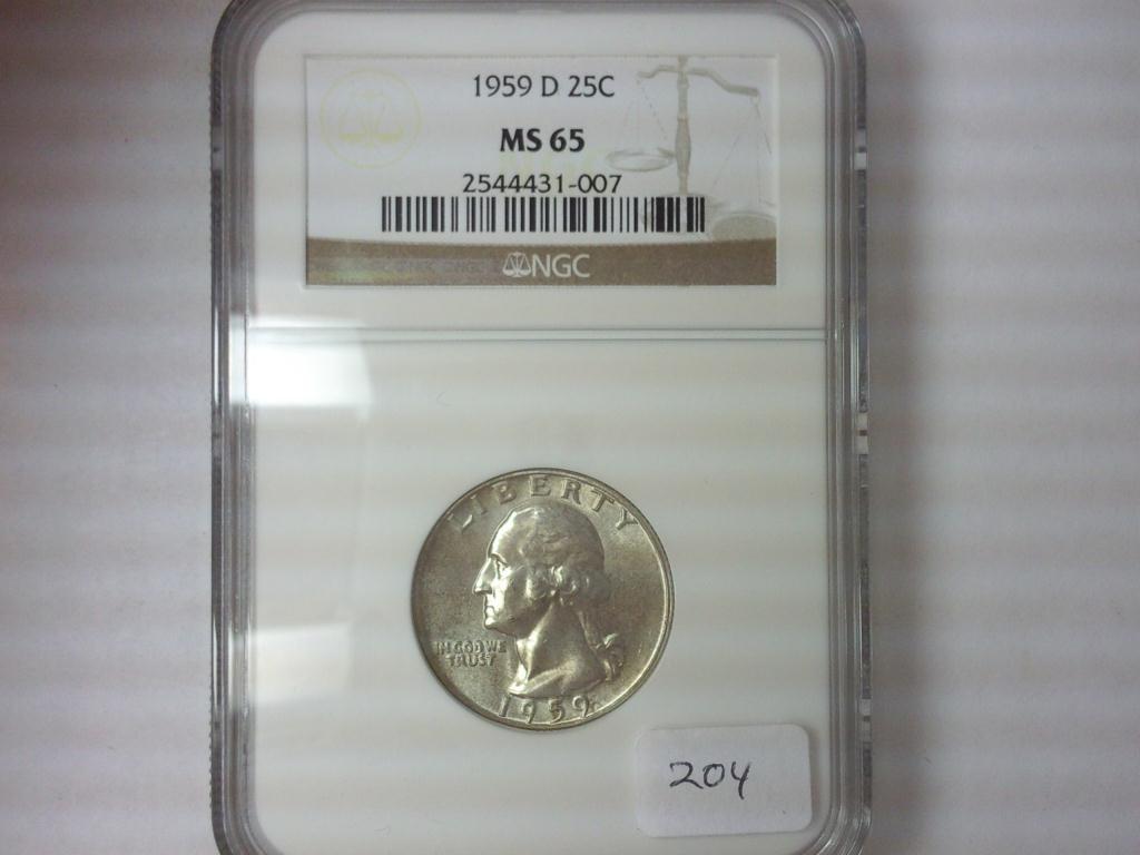 1959-D WASHINGTON SILVER QUARTER NGC MS65