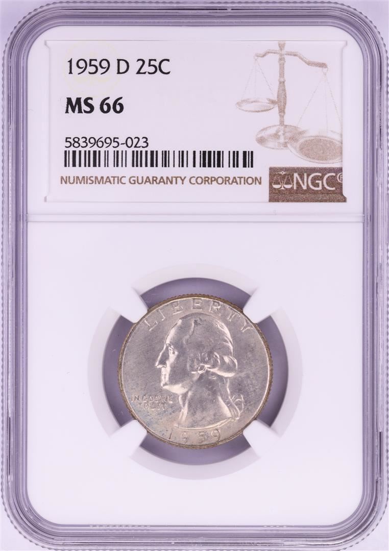 One 1959-D Washington Quarter Coin NGC MS66. NGC Certified.