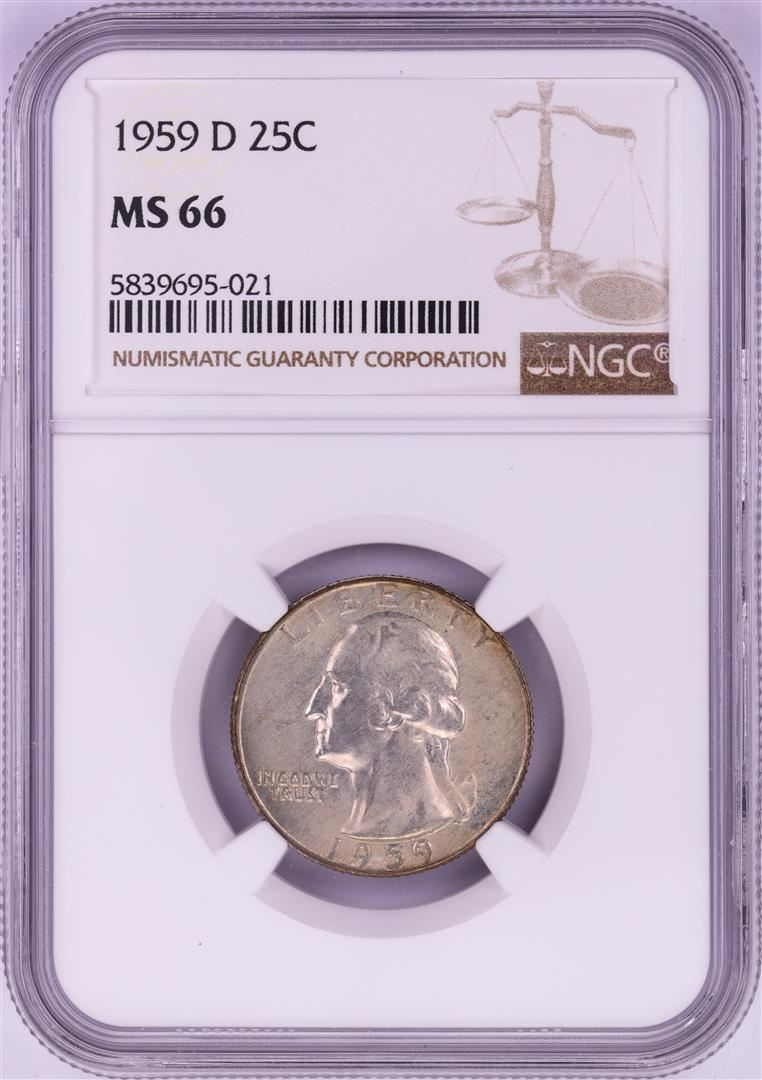 One 1959-D Washington Quarter Coin NGC MS66. NGC Certified.