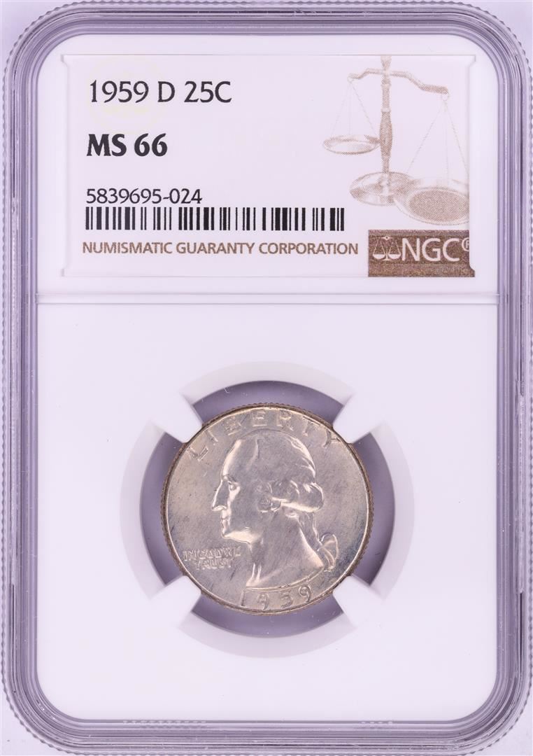 One 1959-D Washington Quarter Coin NGC MS66. NGC Certified.