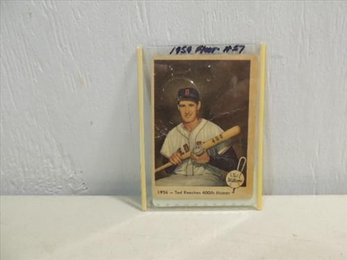 1959 FLEER #57 BASEBALL PLAYER CARD TED WILLIAMS. HORIZONTAL CREASE. AS SHOWN. VIEW PICTURE FOR DETAIL.