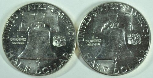 1959 FRANKLIN HALF DOLLAR ROLL GEM BU MS-64-65 COINS, 20 COINS SUPER!