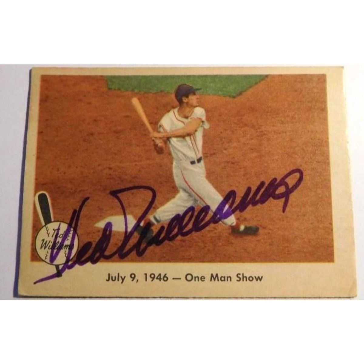 JC-30101-249 Ted Williams played on the Boston Red Sox from 1939 through 1960. Some call him the best hitter of all time. His .406 batting average in 1941 has never since been topped. However, this achievement received less attention than it might have, due to Yankee Joe DiMaggio setting his own record in 1941, hitting in 56 straight games. Â JC-30349