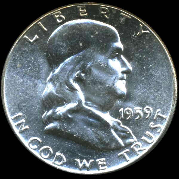 1959 Franklin 50c MS64/65 FBL Rare Reverse Weight ERROR (COI-10445)