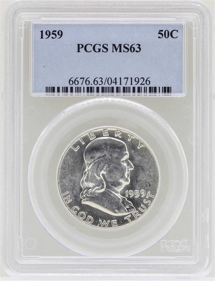 One 1959 Franklin Half Dollar Coin NGC MS63. NGC Certified.