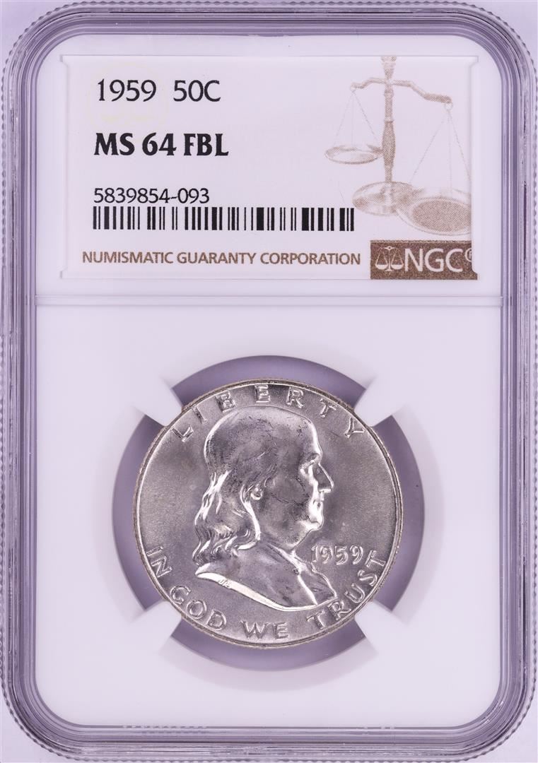 One 1959 Franklin Half Dollar Coin NGC MS64FBL. NGC Certified.