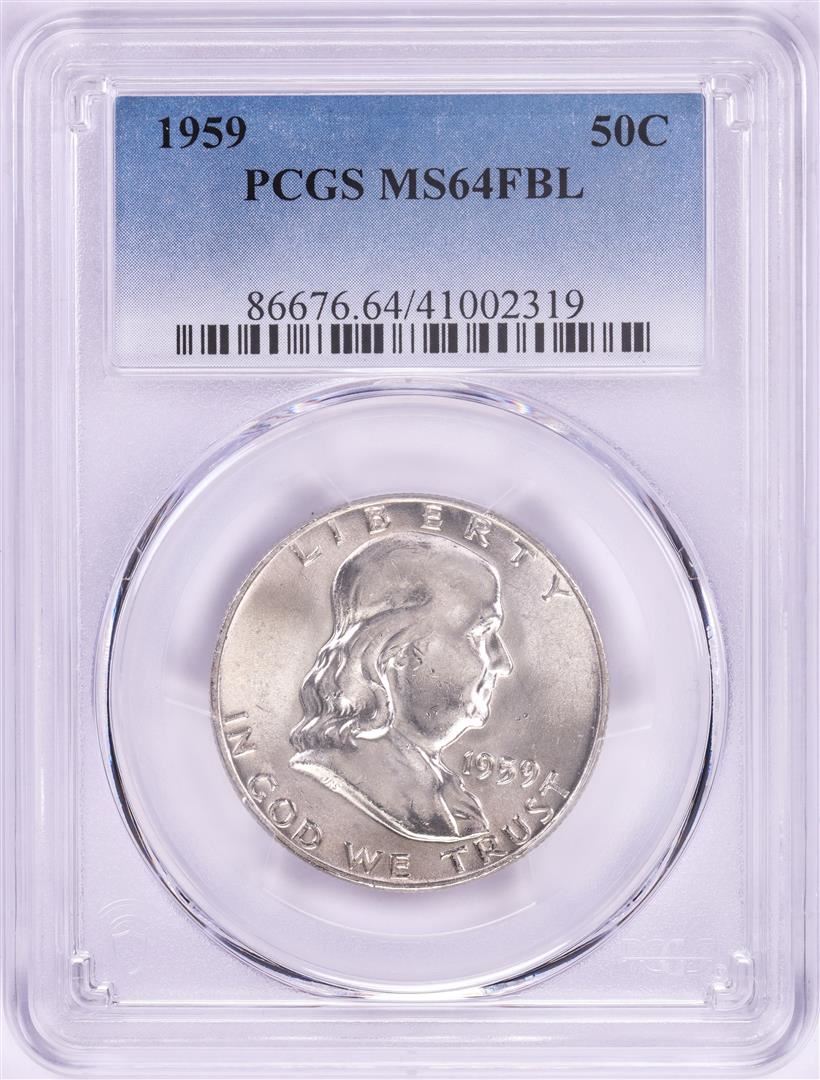 One 1959 Franklin Half Dollar Coin PCGS MS64FBL. PCGS Graded.