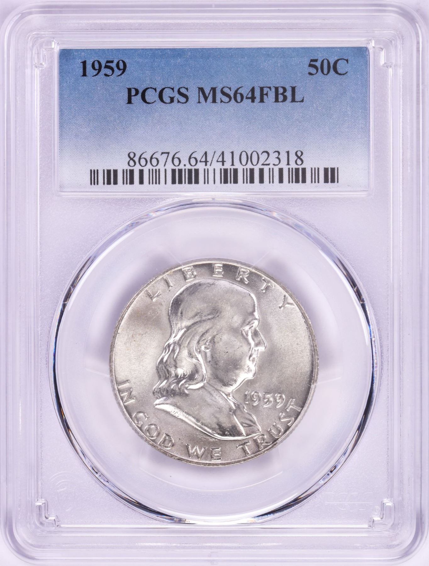 One 1959 Franklin Half Dollar Coin PCGS MS64FBL.