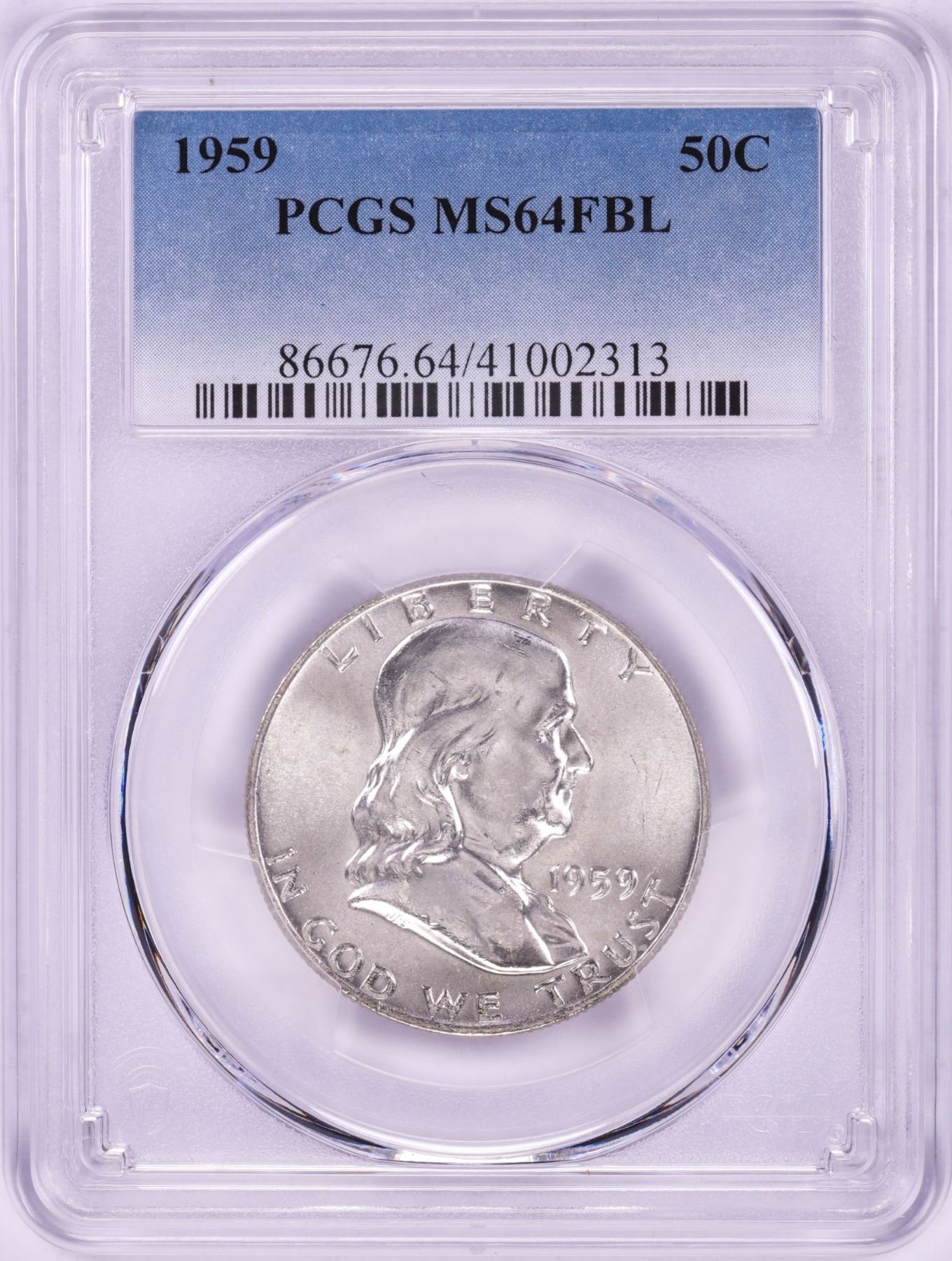 One 1959 Franklin Half Dollar Coin PCGS MS64FBL.