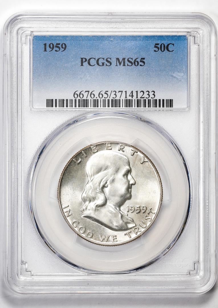 One 1959 Franklin Half Dollar Coin PCGS MS65. PCGS Graded.