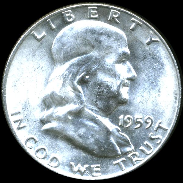 1959 Franklin Half MS64/65FBL Double Die & Underweight ERRORS (COI-10763)