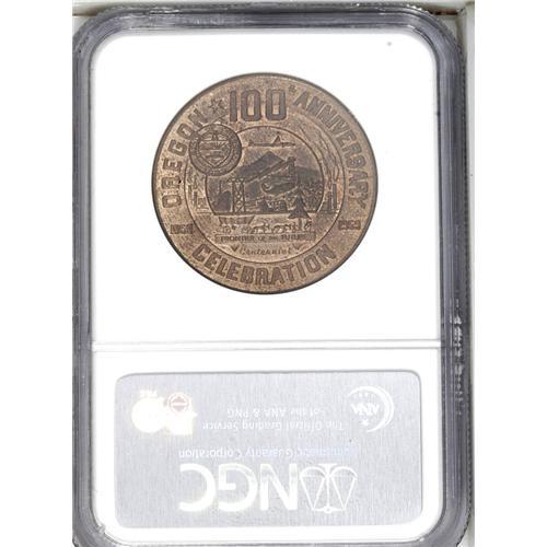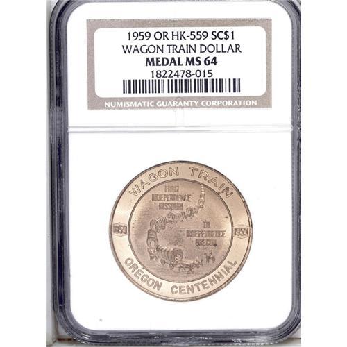 <B>1959 Oregon Statehood Centennial, HK-559, MS64 NGC.</B></I> This Independence Wagon Train dollar was part of series of dollar tokens issued for the celebration of the 100th anniversary of Oregon's statehood. Listed in the standard 1963 Hibler-Kappen reference catalog.