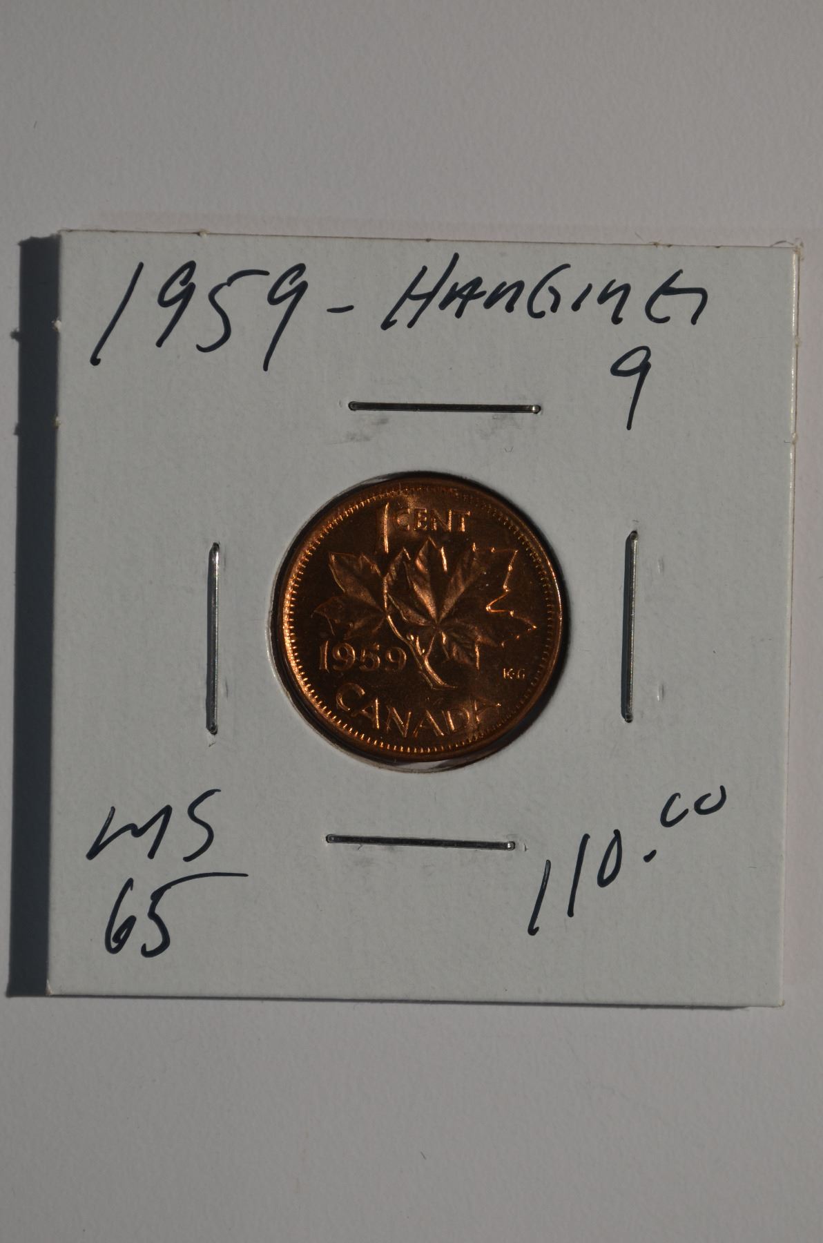 1959 - "Hanging 9" Canadian 1-Cent