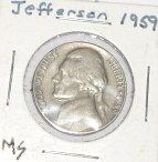 1959 JEFFERSON NICKEL *RARE MS HIGH GRADE-NICE EARLY COIN!! NICKEL CAME OUT OF SAFE!! ***Coin, Currency & All Items Listed in this auction - Grades, Conditions and Values are not Safe Deposit Coins LLC Responsibilty. Grades, Condition and Values are determined by Consigner(s) & Buyers ONLY