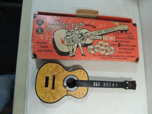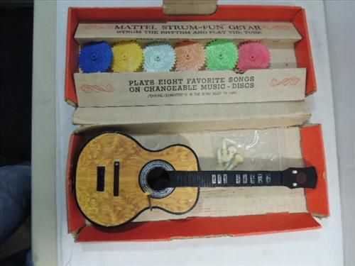 1959 MATTEL STRUM FUN GETAR & PLAYER DISCS. IN ORIGINAL BOX. AS SHOWN. VIEW PICTURE FOR DETAIL.