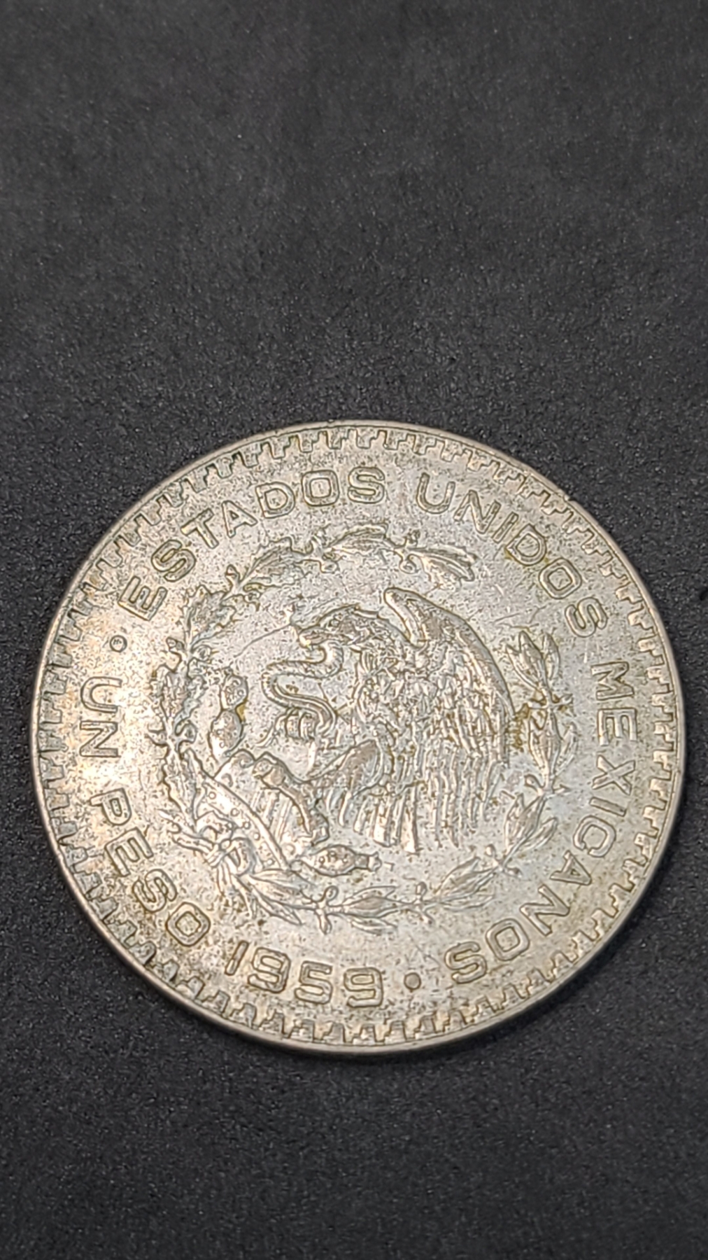 1959 Mexican One-Peso 10% Silver Coin - ASW: 0.0514 Oz