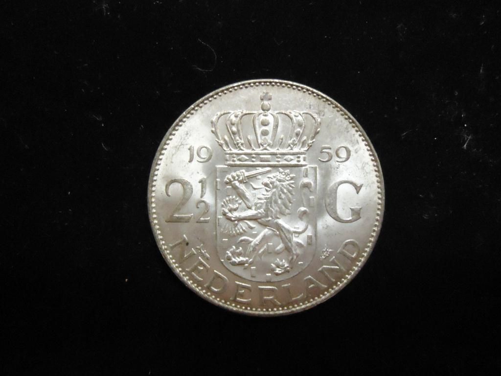 1959 NETHERLANDS KINGDOM 2 1/2 GULDEN SILVER