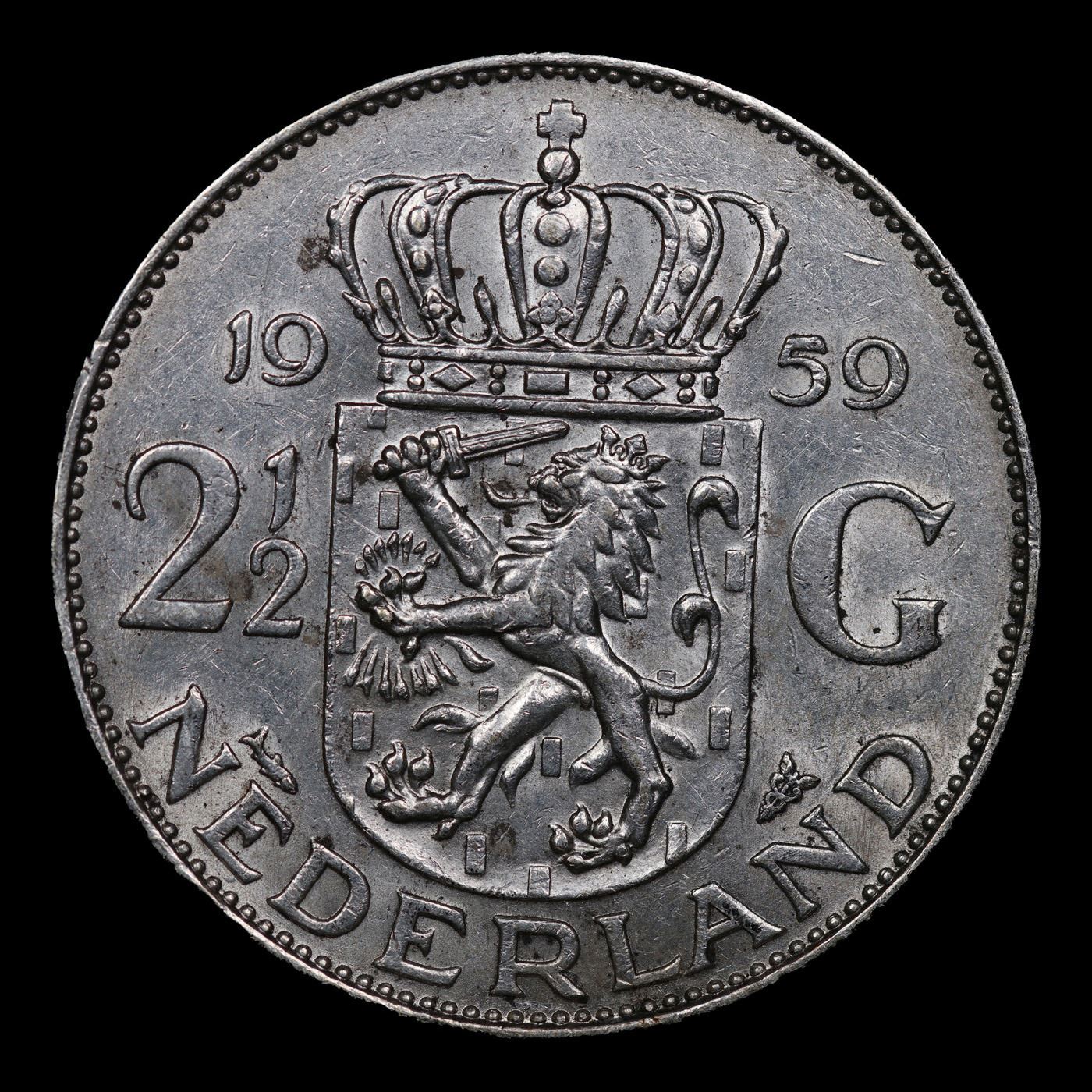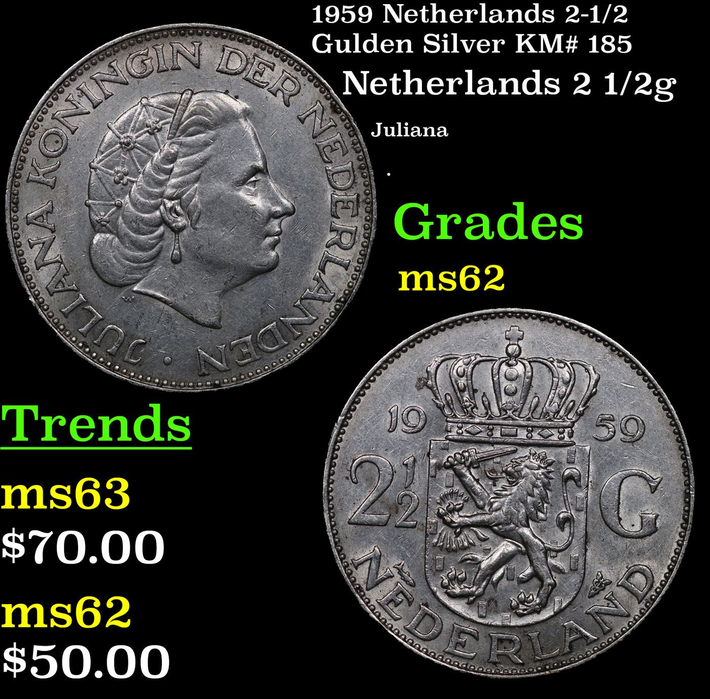 1959 Netherlands 2-1/2 Gulden Silver KM# 185 Grades Select Unc.