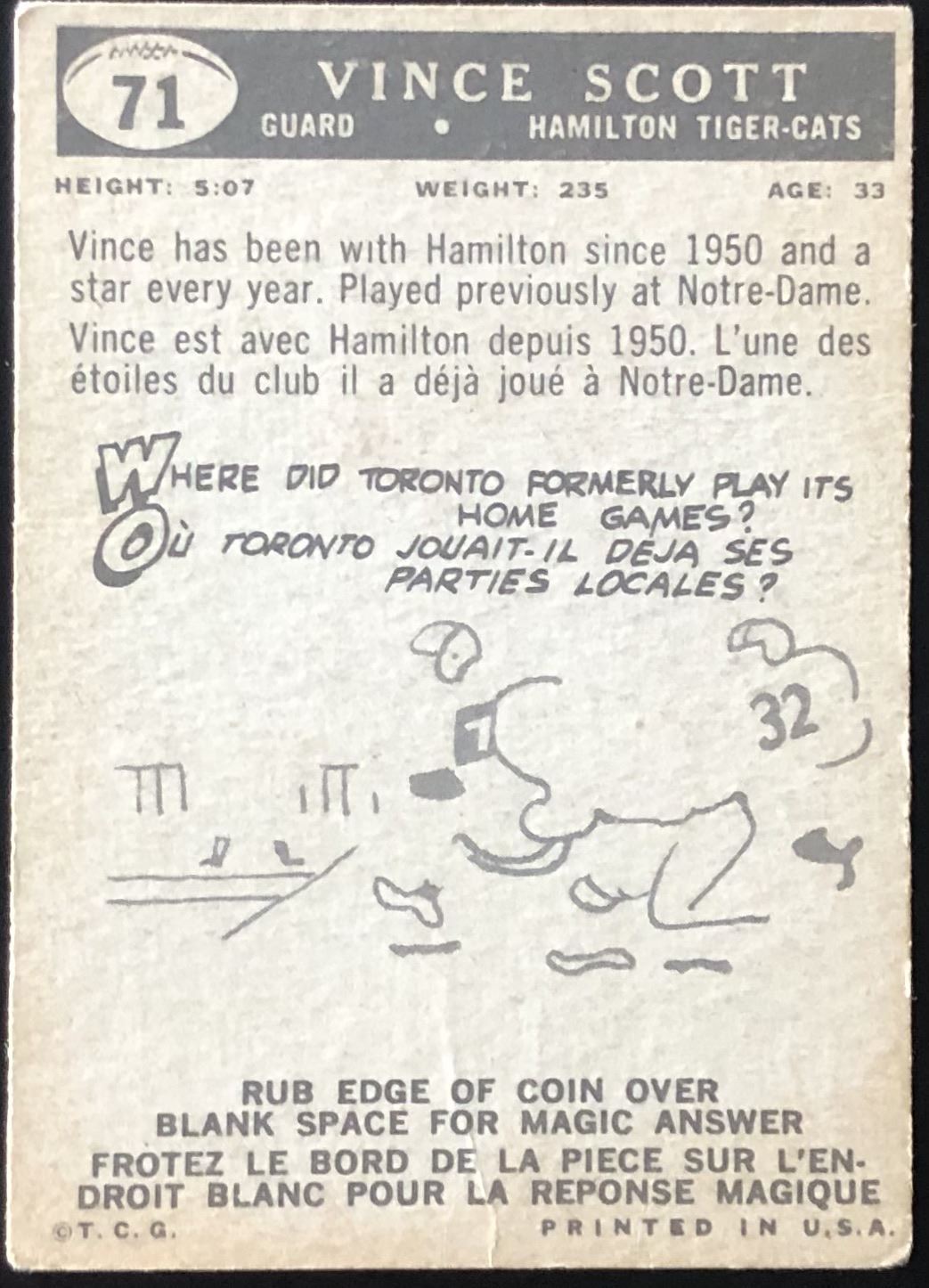 Card #71 vintage, CFL, OPC, football, hall of fame