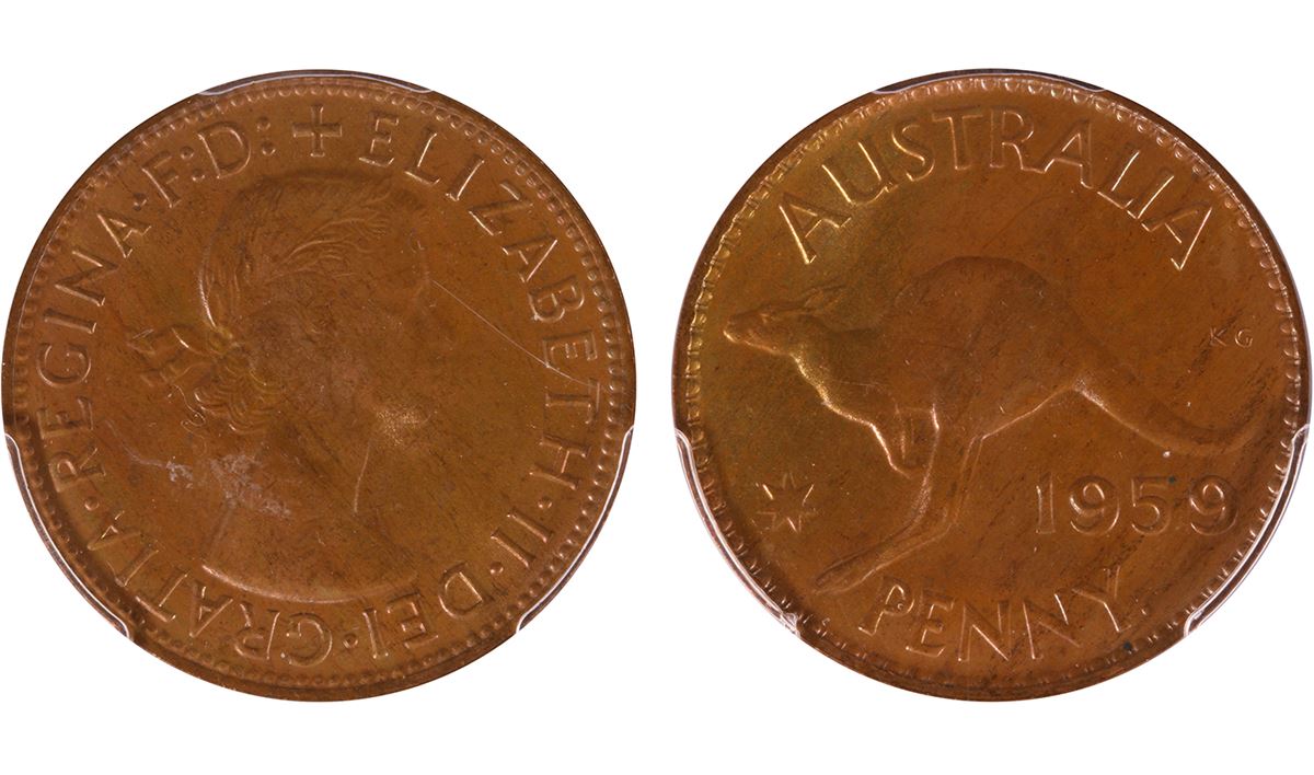 1959(P) Australian QEII Penny - PCGS MS64RB