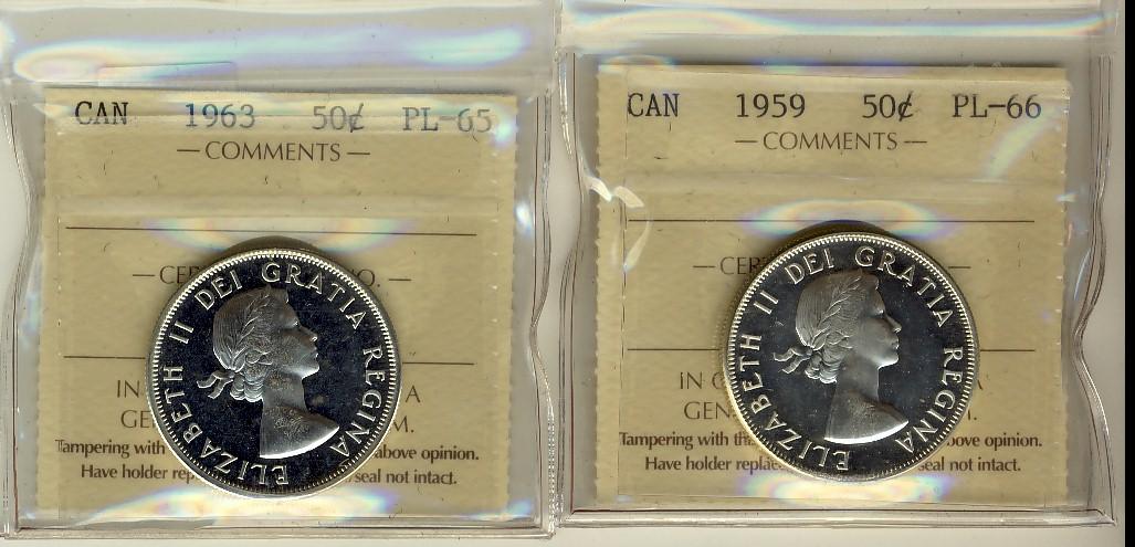 1959 PL66 & 1963 PL65 50¢. Lot of 2 ICCS graded coins.