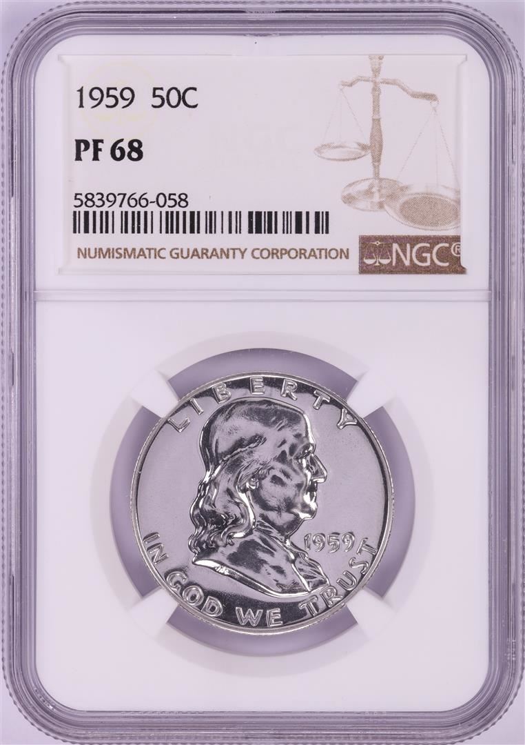 One 1959 Proof Franklin Half Dollar Coin NGC PF68. NGC Certified.