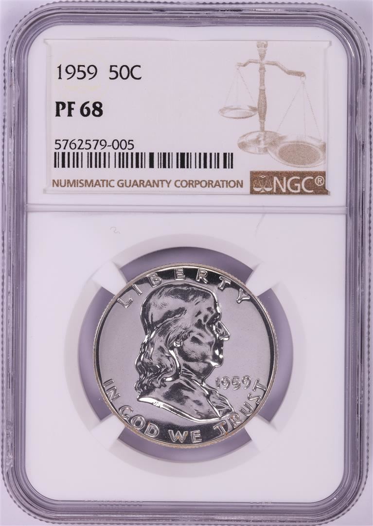 One 1959 Proof Franklin Half Dollar Coin NGC PF68. NGC Certified.