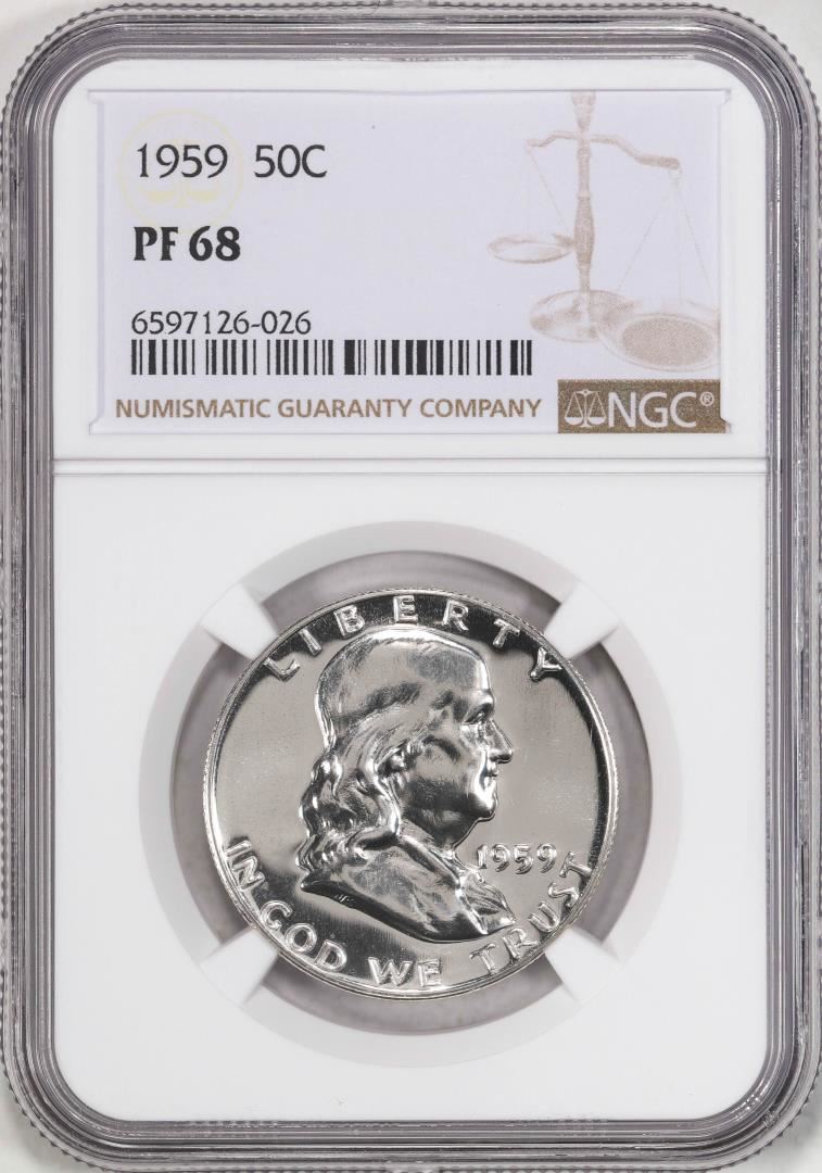 One 1959 Proof Franklin Half Dollar Coin NGC PF68. NGC Certified.
