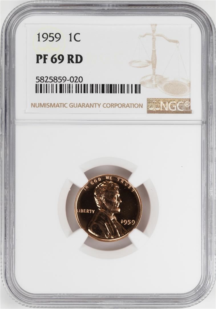 One 1959 Proof Lincoln Memorial Cent Coin NGC PF69RD. NGC Certified.