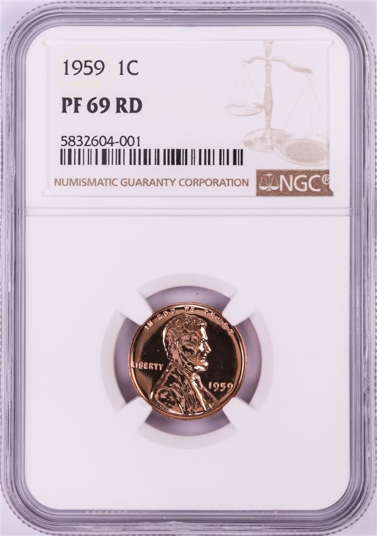 One 1959 Proof Lincoln Memorial Cent Coin NGC PF69RD. NGC Certified.