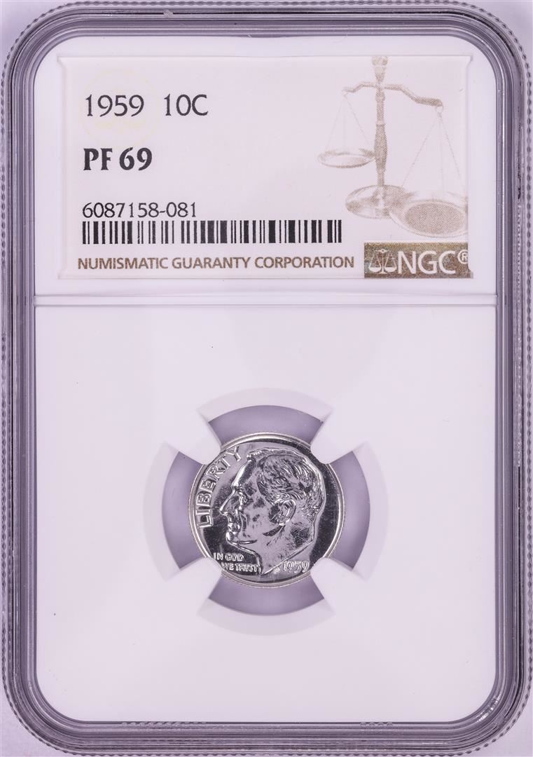 One 1959 Proof Roosevelt Dime Coin NGC PF69. NGC Certified.